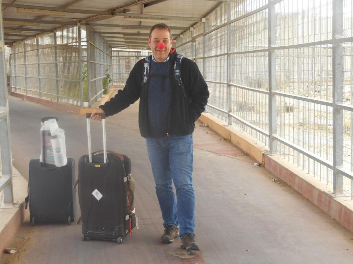 Die rote Clownsnase sollte die Situation an der Grenze versuchen zu modifizieren, den Wahnsinn versucht der Rheinländer mit Karneval und Humor zu begegnen oder die brutalen Realitäten mit paradoxem Ideen beantworten. Die Einreise stellte diesmal kein Problem dar, alle „Permits“ lagen vor und reibungslos kamen wir frühmorgens schon in Gazastadt an. Die Gruppe erwartete uns schon mit viel Vorfreude und wir wurden herzlich begrüßt.