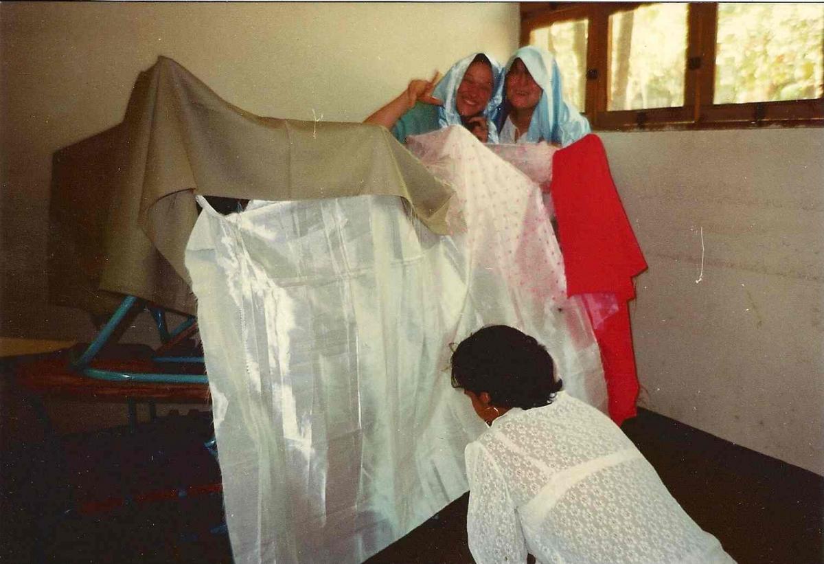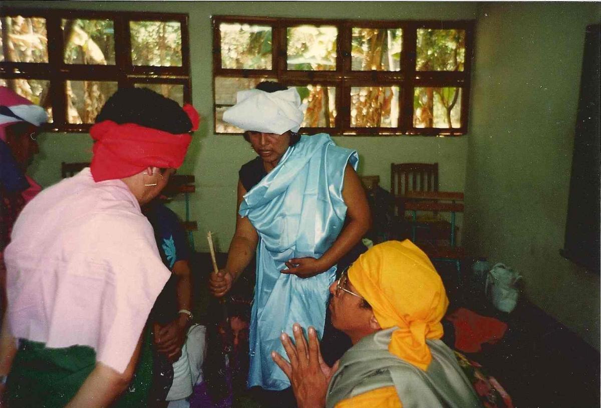 Als Ausbilderin im Psychodrama am Psychodrama Institut für Europa und durch meine Studium geübt im Umgang mit biblischen Texten, als Supervisorin in vielen sozialen Einrichtungen verfügte ich fachlich über die nötigen Qualifikationen. Für das Ganze in Spanisch fühlte ich mich nicht kompetent genug. Da ich gerne im Tandem arbeite, warb ich mit Erfolg um die Mitarbeit von Birgit Ullrich*. Birgit schätzte ich sehr von der Teilnahme an ihren Sprachkursen mit Sprachpsychodramaturgie (Defue 1993).